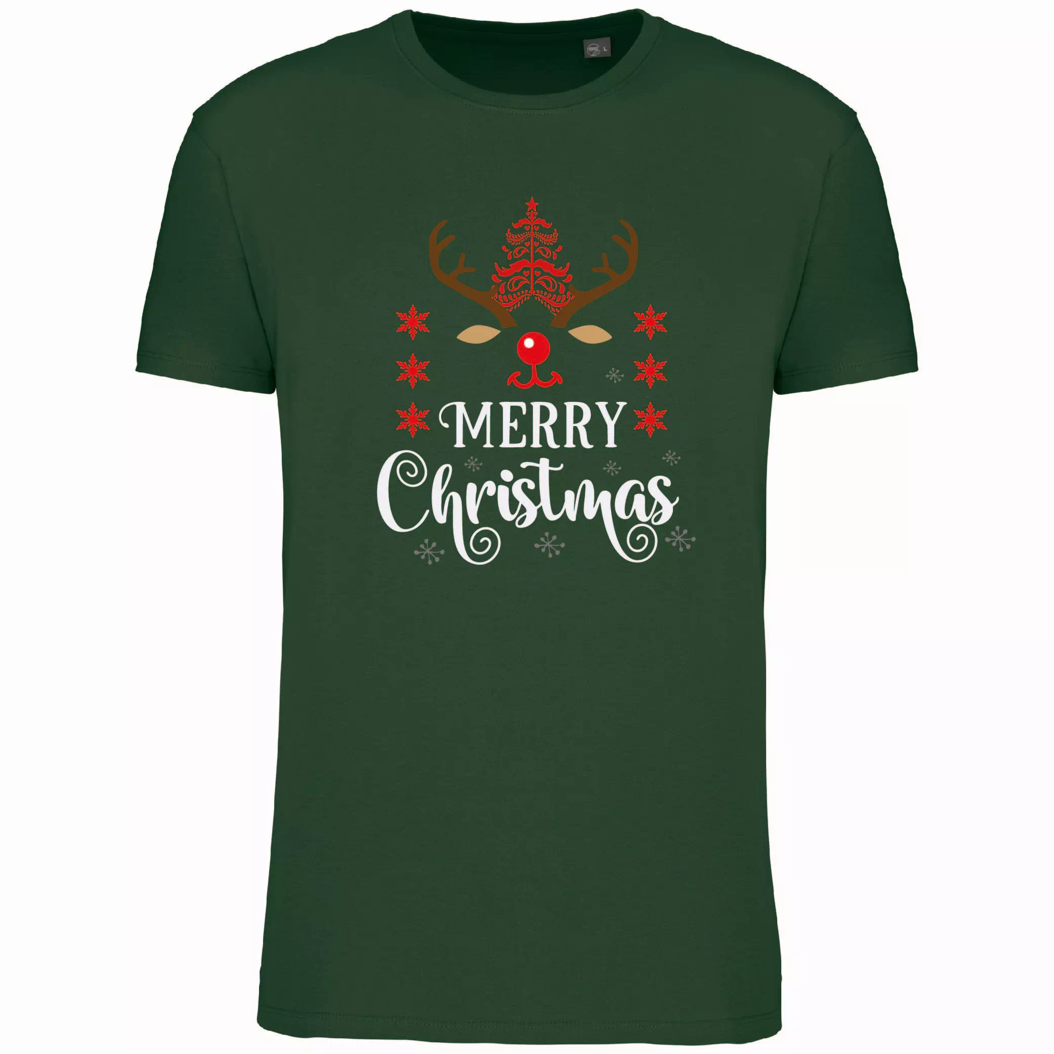- Design : Impression « Merry Christmas » avec une tête de renne festive